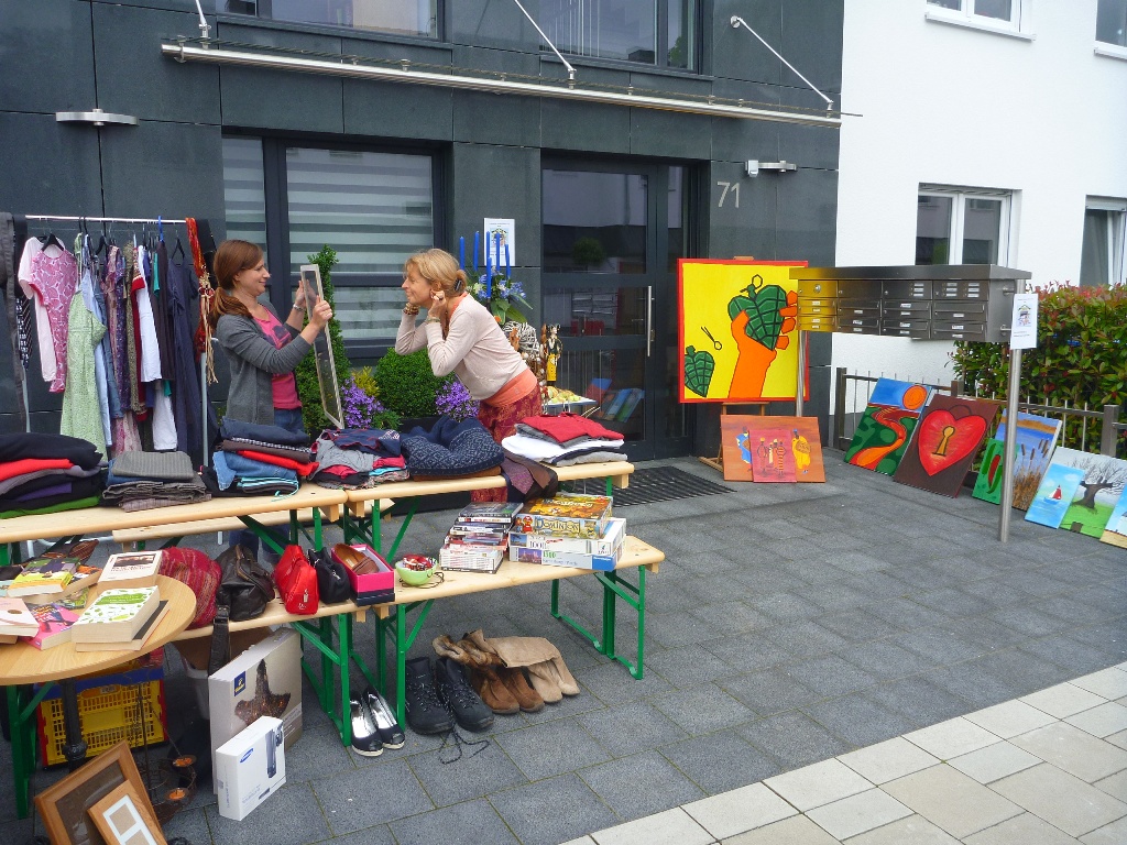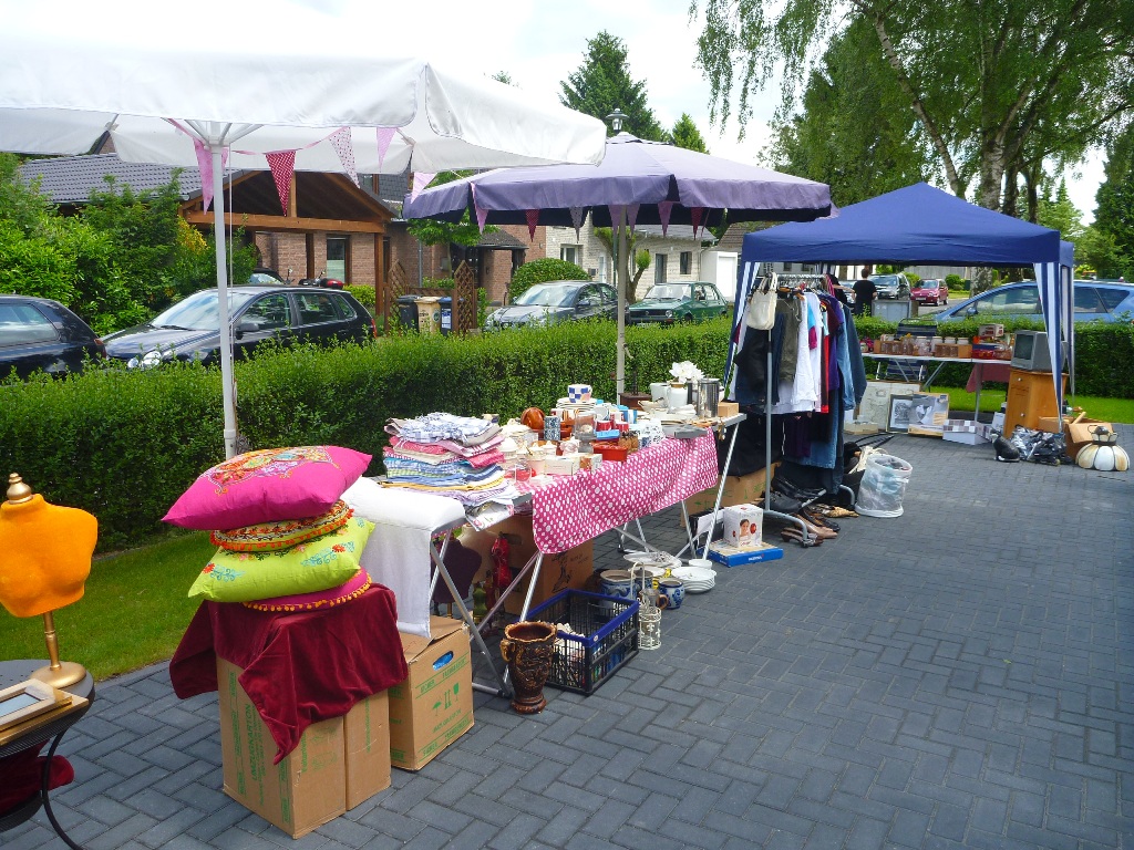 Annette und ich sind ca. gefühlte 15 km kreuz und quer durch Urdenbach gelaufen und haben ca. 6 Stunden, Garagen, Garten und Gartenhäuser, Zelte, Vorgärten, Hauseingänge, Auffahrten und, und, und, besichtigt, es war toll, aber jetzt bin ich total geschafft, mehr als beim Orangerietrödel, die Ausbeute war bei Annette 7 Tüten und bei mir 3 Stück. Hatte mein Auto in der Tübinger Str. stehen, so konnten wir zwischendurch abladen, auch Euer Standort war sehr gut, Annette stand oben auf der Kammerrathsfeldstr. fast an der Koblenzer Str. zum Schluss sind wir dann noch alles abgefahren und haben umgeladen.